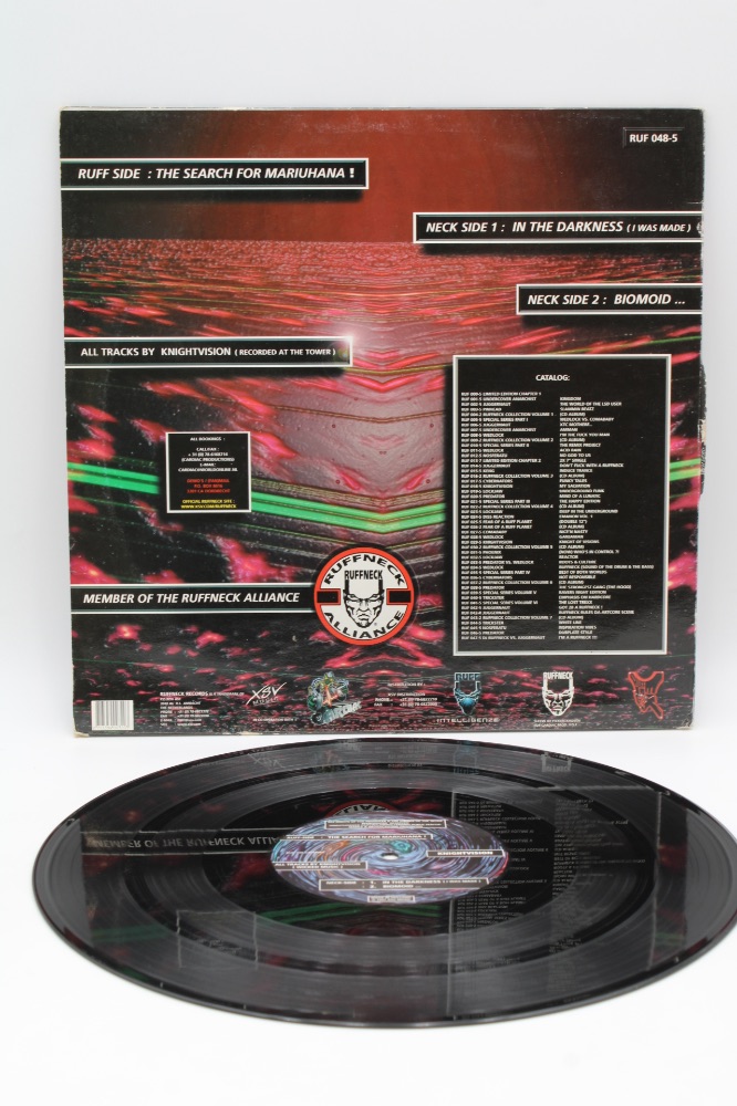 Knightvision – The Search For Mariuhana ! Label: Ruffneck Records – RUF 048-5 Format: Vinyl, 12″, 33 ⅓ RPM, 45 RPM Country: Netherlands Released: 1997 Genre: Electronic Style: Hardcore, Gabber