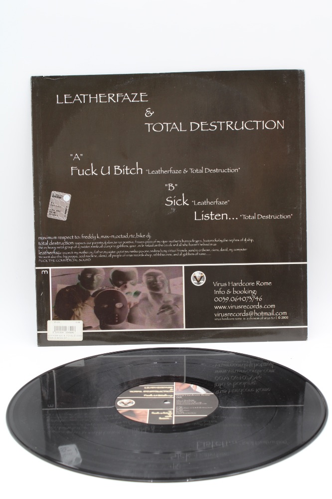 Leatherfaze & Total Destruction – Fuck U Bitch EP Label: Virus Hardcore Rome – VHR 001 Format: Vinyl, 12″, EP Country: Italy Released: 2000 Genre: Electronic Style: Hardcore, Gabber